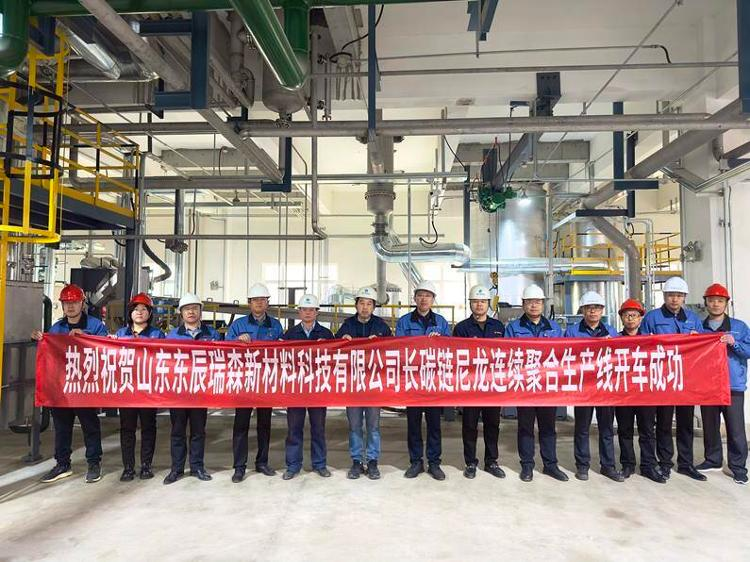 山東東辰瑞森新材料科技有限公司國內(nèi)首條長碳鏈尼龍1012連續(xù)聚合生產(chǎn)線一次試車成功